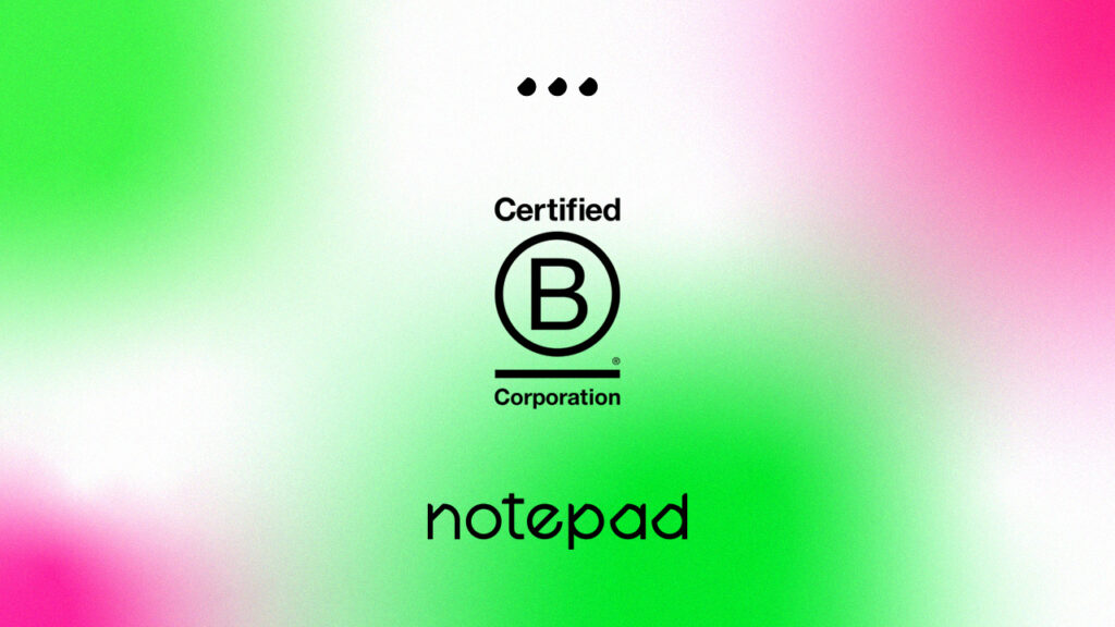 Notepad is officially a certified B Corporation! This certification allows purpose-driven companies like ours to have a positive impact on the planet and its people.